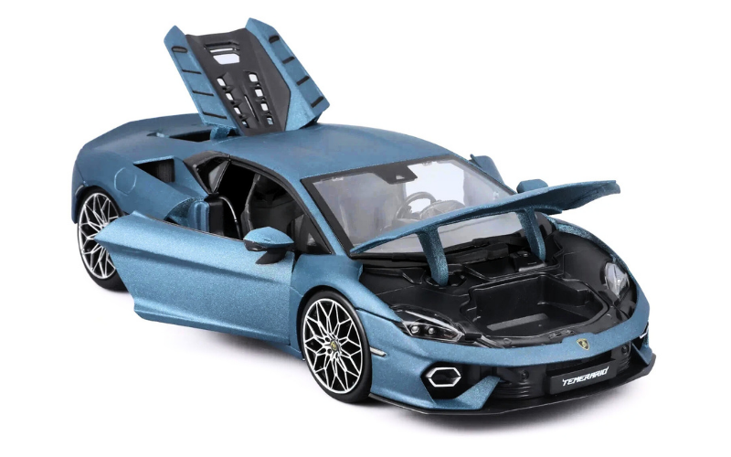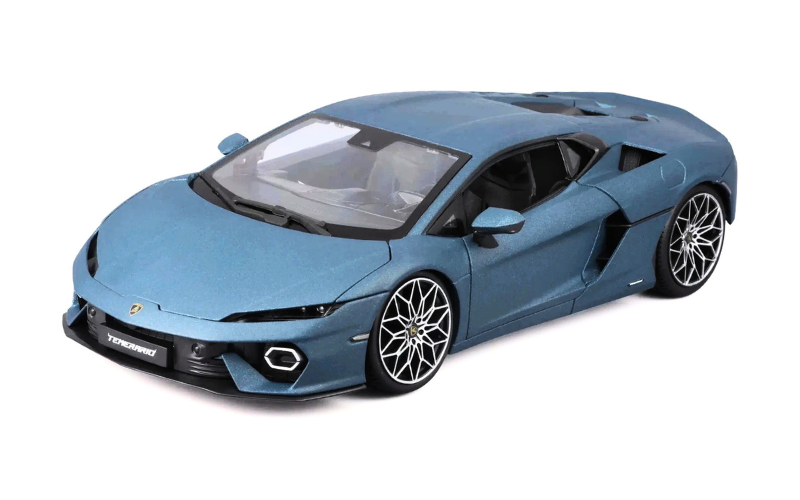A striking supercar in miniature: the Lamborghini Temerario finished in matte blue metallic. This 1:18 scale die-cast features working steering, opening frunk, doors, and engine bay, plus a finely detailed interior and exterior for an authentic display presence.