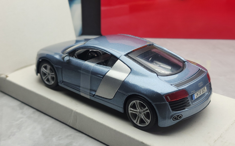This is a pre-owned and rare discontinued Maisto 1:24 die-cast model of the Audi R8 finished in striking sky blue. The model captures the sleek design of Audi’s iconic supercar, featuring opening parts and detailed craftsmanship. It comes with the original box. Please note there are visible scratches on the roof and rear window, and slight paint bubbling at the rear, as shown in the photos. Despite these flaws, it remains a desirable collectible for Audi and supercar enthusiasts.