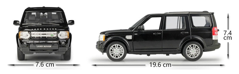 This is a pre-owned and rare discontinued Welly 1:24 die-cast model of the Land Rover Discovery 4. Finished in metallic silver-grey, the model captures the classic design of this luxury SUV. It includes opening doors and hood, along with functional steering on the front wheels. The original box is included, though it shows visible wear, and the model itself has paint dents and scratches caused by inner packaging pressure. Despite these flaws, the overall display effect remains very good, making it a highly collectible piece for Land Rover fans and SUV model enthusiasts.